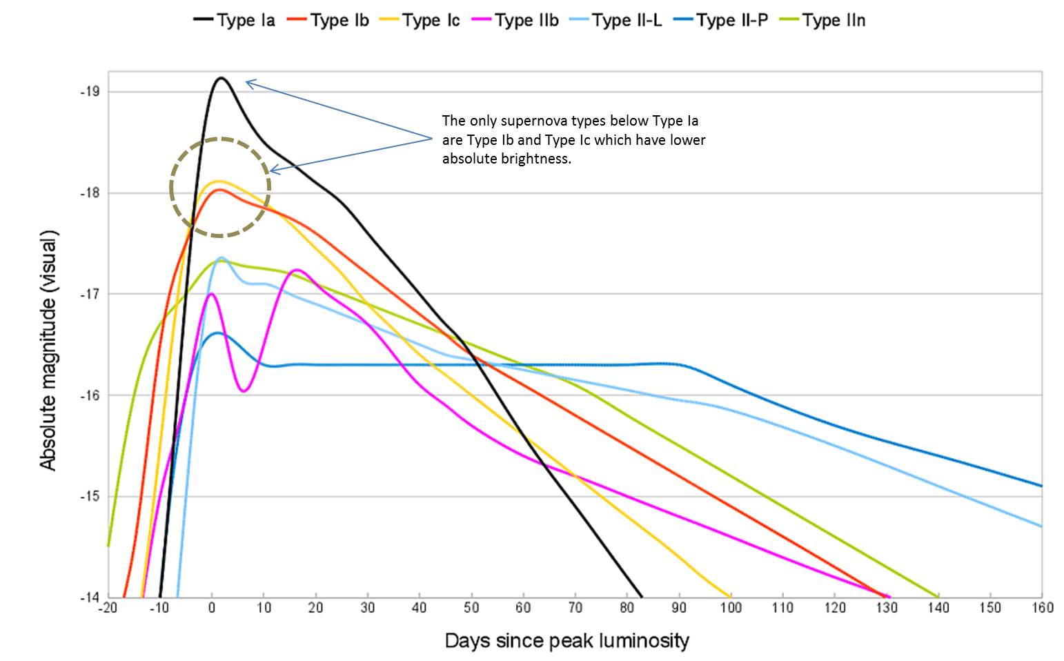 Graph Of The Luminosities Of The Known Supernova Types And Comparison Between Type Ia And Ib C